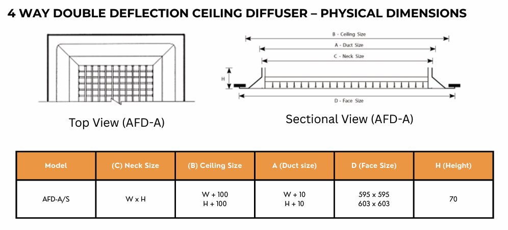 4 Way Double Deflection Ceiling Diffuser (AFD)