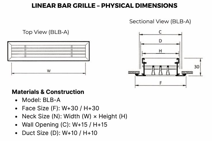 - Modern Linear Bar Grilles designed for seamless integration into ceilings, walls, or sidewall applications. Features directional air control, even airflow distribution, and durable construction for commercial and residential HVAC systems.