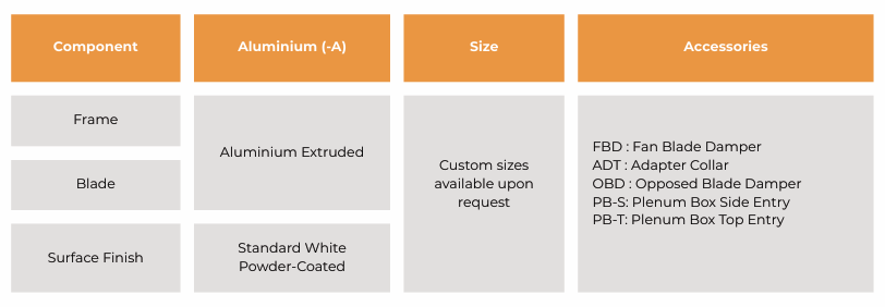 | Aluminium (-A) | Aluminium Extruded , Standard White Powder-Coated |