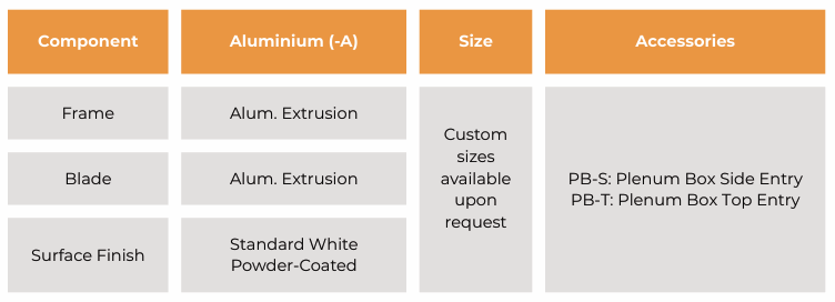 | Aluminium (-A) | Aluminium Extruded , Standard White Powder-Coated |