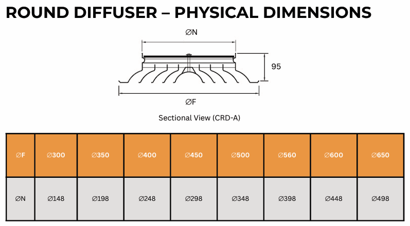 - The Round Diffuser is designed for efficient air distribution while
